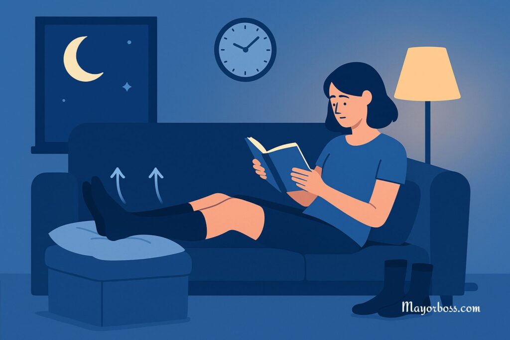 - One to two hours before bed: elevate legs while you read or watch TV.